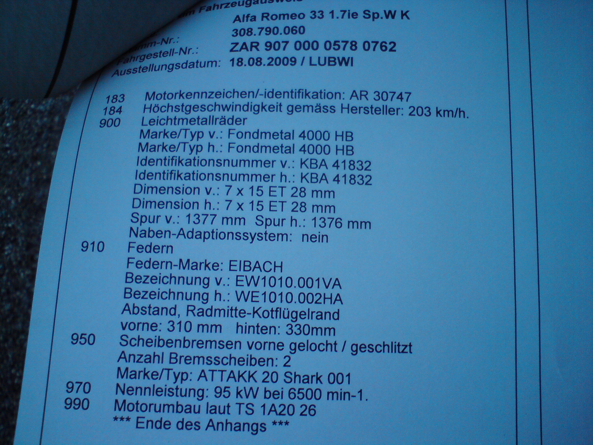 Eingetragener Umbau auf 16V, inkl. Scheibenbremsen hi.