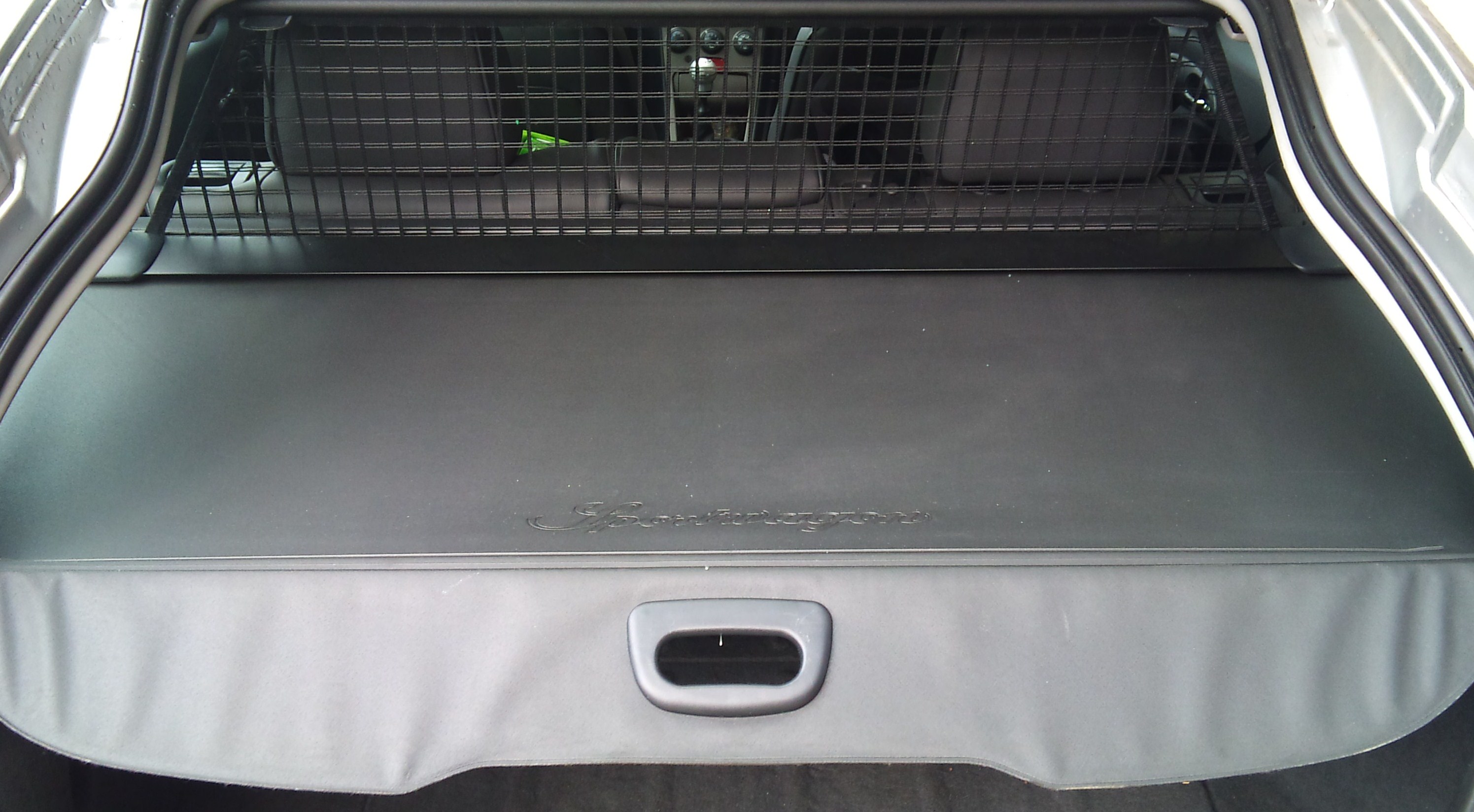 Es kann nach hinten aufgerollt werden und es hat auch noch ein Auffangnetz oben und unten zum ausziehen, wenn man in den Ferien den Kofferraum bis oben füllen muss!