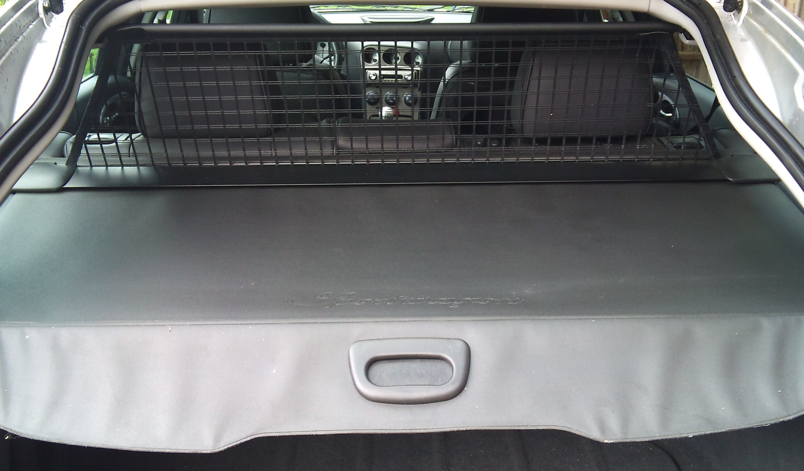 Es kann nach hinten aufgerollt werden und es hat auch noch ein Auffangnetz oben zum ausziehen, wenn man in den Ferien den Kofferraum bis oben füllen muss!