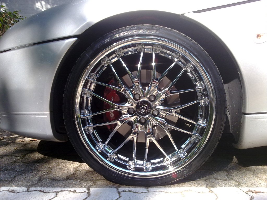 19" Barracuda Voltec T6 Chromräder (19x8) plus Winterräder 16". Tiefer gelegt mit Eibach rot. Ragazzon Endschalldämpfer und Cup Rohr...wunderschöner Arese V6 sound! Dazu noch einen erlaubten Ragazzon Mittelschalldämpfer.