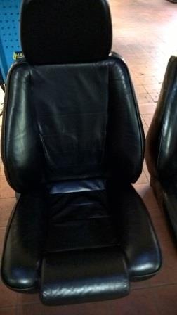 Beide vordere Sitze, wurden früher mal mit schwarzem Leder bezogen. Sitze ohne Konsolen (Untergestell, muss von bestehenden Sitzen umgebaut werden). Sitze an sich in gutem Zustand, wurden von einem Vorbesitzer aber mal falsch behandelt, wodurch sie einen "speckigen Glanz" erhalten haben. Hier müsste man also mal mit der richtigen Lederpolitur dahiner.
