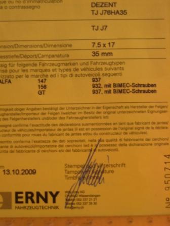 Passen aber nach Beiblatt auch auf Alfa 147 und 156
