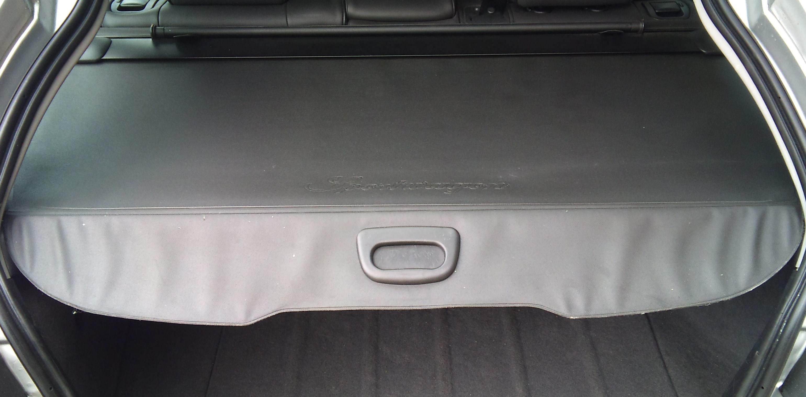 Es kann nach hinten aufgerollt werden und es hat auch noch ein Auffangnetz oben zum ausziehen, wenn man in den Ferien den Kofferraum bis oben füllen muss!