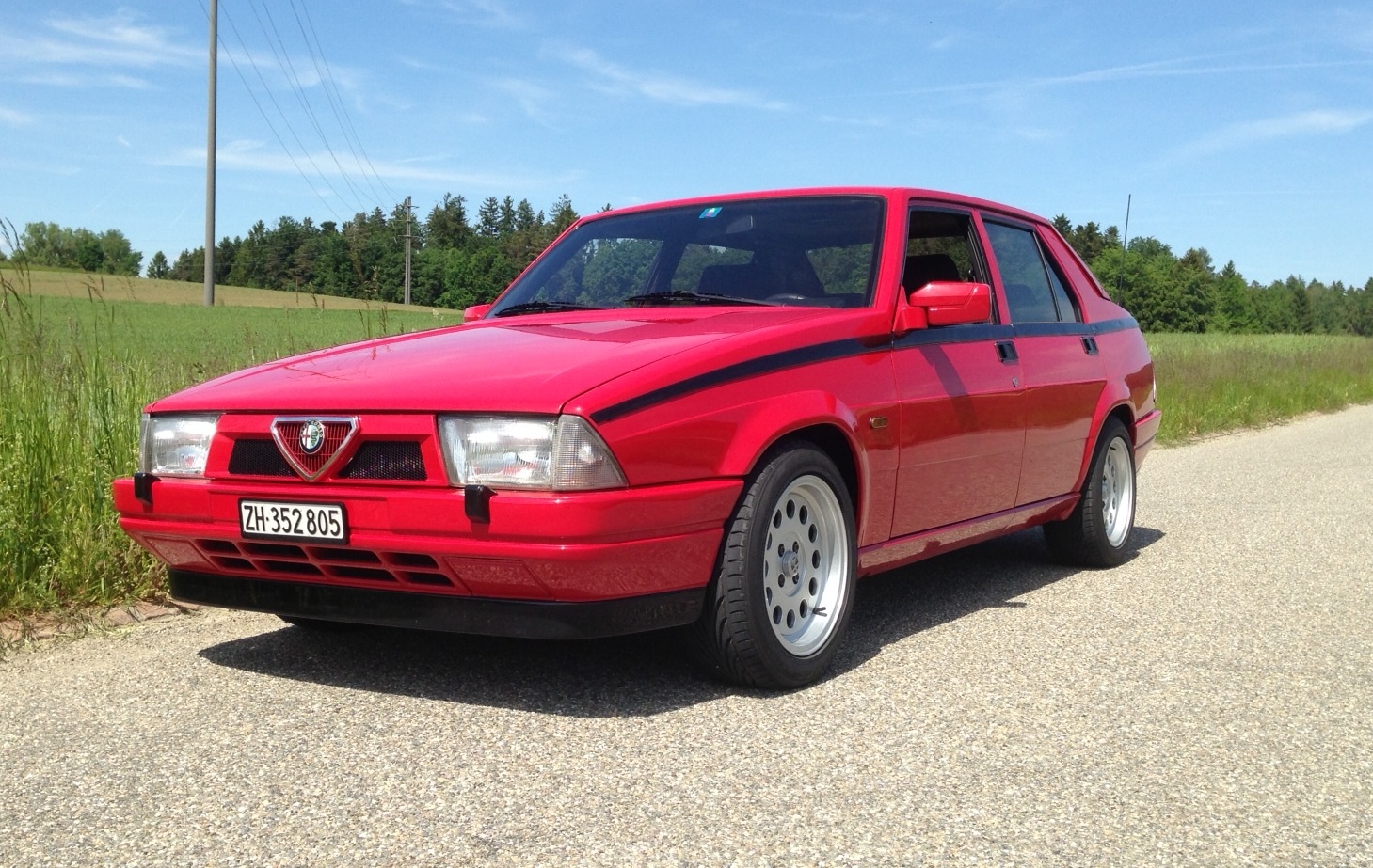 Der Alfa 75 ist in einem super Zustand. Er wurde letzte Woche frisch geprüft. Der Alfa 75 steht auf neu aufgearbeiteten Ronal Felgen (gerichtet und lackiert) inkl. neuen Nabendeckel und fast neuen Toyo Pneus. Recaro Interieur in einem guten Zustand. Vor ca. 3000km wurde der Zylinderkopf und die Vergaser revidiert. Ausserdem hat er eine neue Batterie, neue Zündungsteile inkl. neuen Zündkabel und einen neuen Endschalldämpfer. Er fährt sehr schön, keine Vibrationen der Kardanwelle und das Getriebe lässt sich wunderschön schalten. Vor kurzem habe ich noch die Heckleuchten durch rote ersetzt und das Check Control ausgetauscht. Die Tieferlegung ist eingetragen (inkl. dem Drehstab vorne) Der Alfa 75 wird frisch ab Service verkauft.