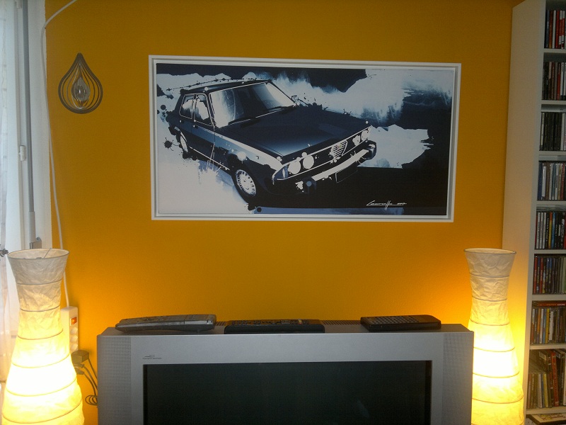 wenn ihr eurer Wohnzimmer eine spezielle note geben wollt mit einem speziellem Bild, vielleicht eurer Alfa als Kunstbild habt ihr jetzt die möglichkeit dies zu tun. Und zwar ein guter Freund von mir war Mitarbeiter vom Centro Stile Alfa Romeo und bietet seine können an. Also, wer interesse hat kann mir mal Bilder schicken seines Schmuckstück und ich kann ihm dann dies weiterleiten. Der Preis richtet sich nach grösse und Aufwand. Vielleicht wollt Ihr eventuell eine Freude bereiten und sowas schenken. Hier ein beispiel eines Kunden.