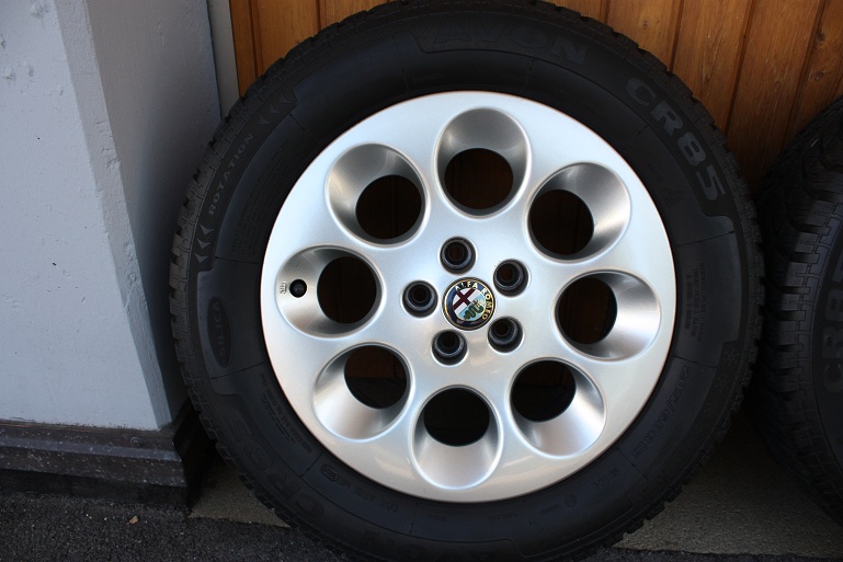 Es handelt sich hierbei um 4 originale Alfa Romeo Alufelgen mit Winterpneu's drauf: